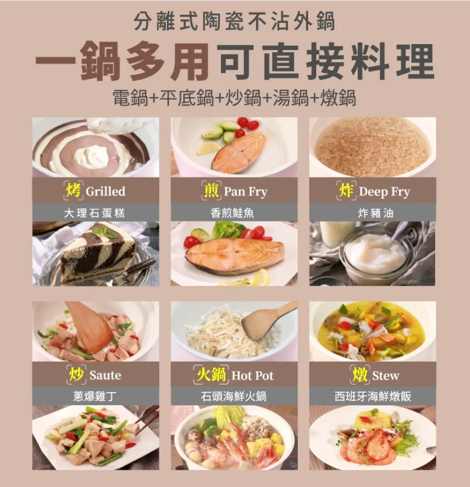 煎/煮/炒/炸/燜/蒸/燉/火鍋…OK。