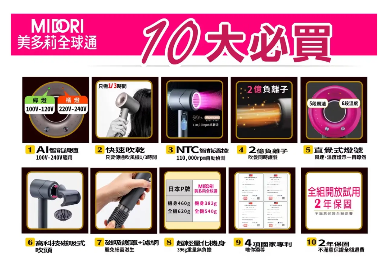 全球首創6段溫控×5段風速,變化30種整髮造型