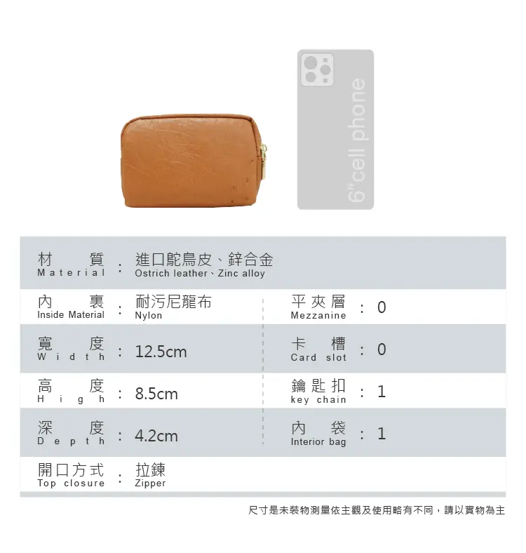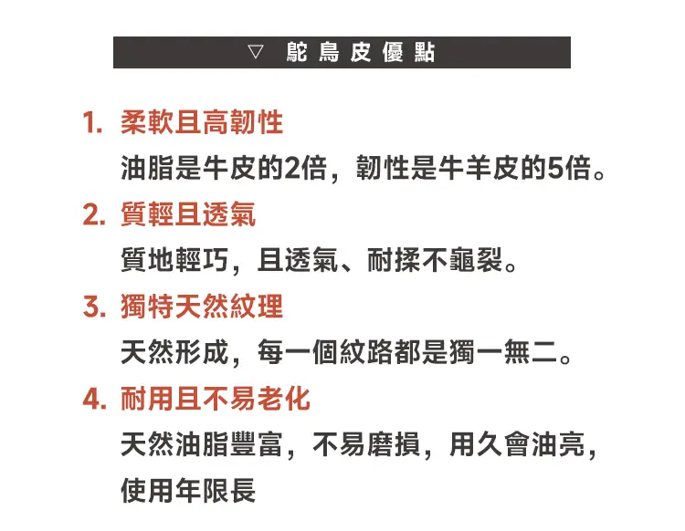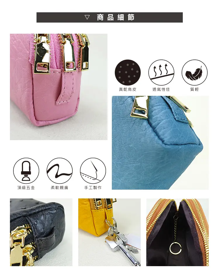 ※鴕鳥皮/鱷魚皮屬於天然珍稀皮革,每一只包都有獨特的天然動物紋路