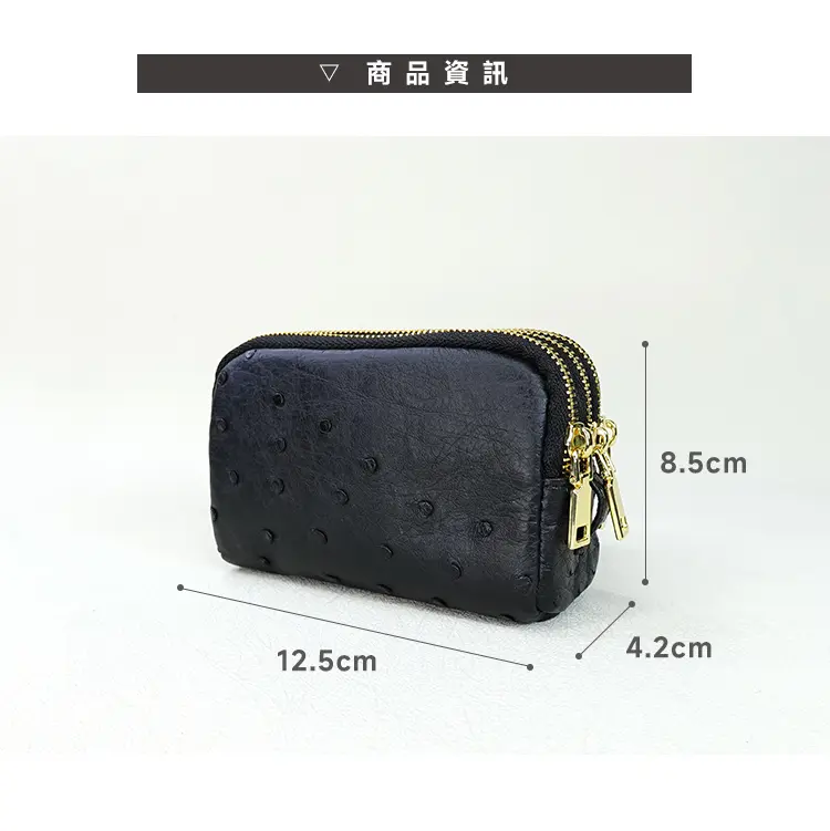 M2nd 珍稀鴕鳥皮三拉鍊胖胖包/熱銷破千顆/一年保固/收納零錢包