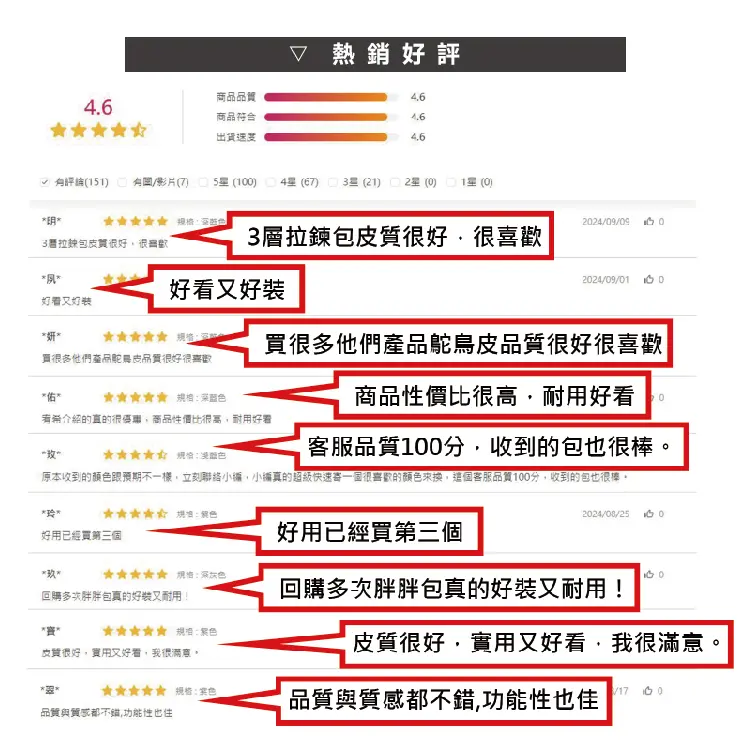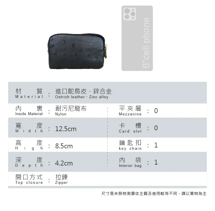 ※鴕鳥皮/鱷魚皮屬於天然珍稀皮革,每一只包都有獨特的天然動物紋路