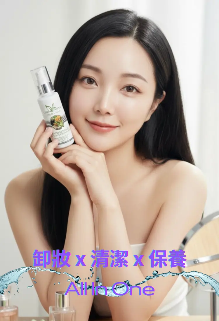 卸妝後再以一般清潔產品洗臉,即完成臉部清潔動作。