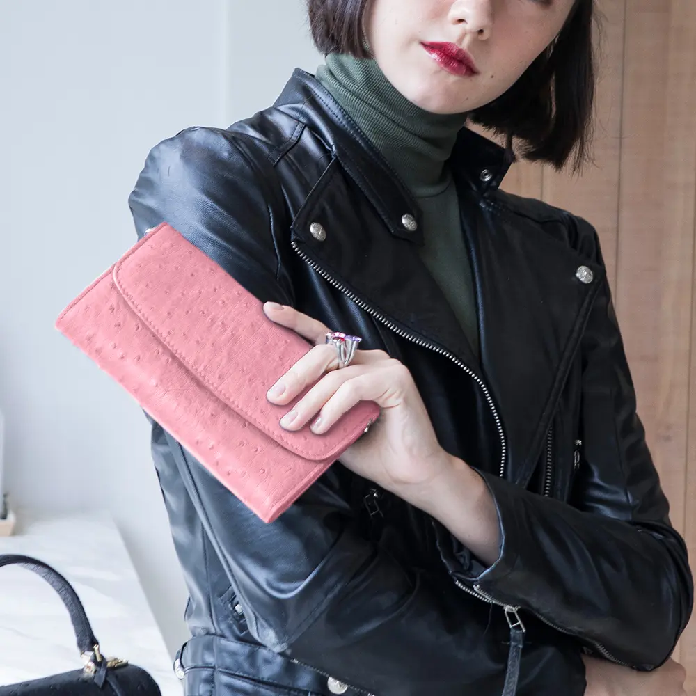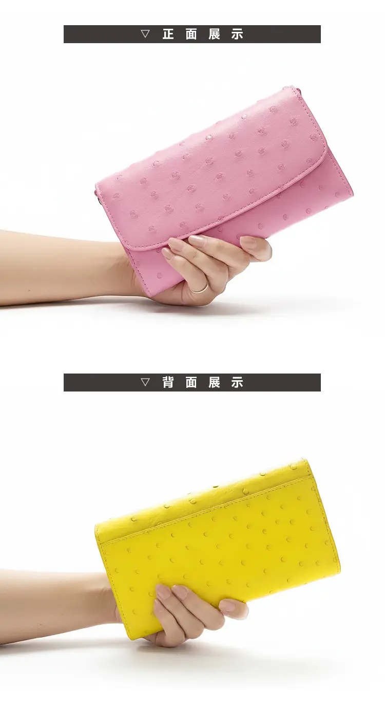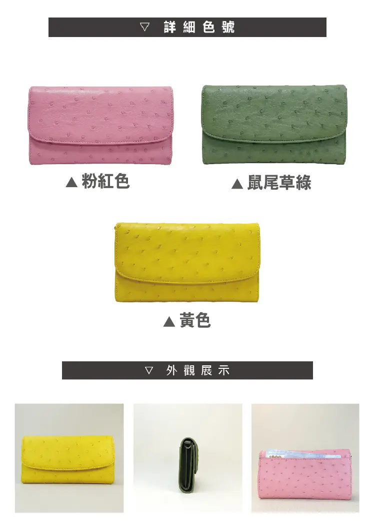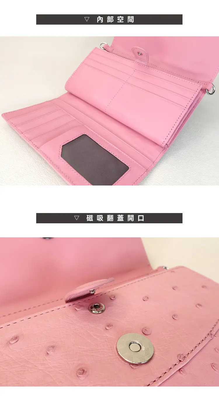 M2nd 珍稀鴕鳥皮三折WOC長夾包 /手拿包/肩背包/12個月保固