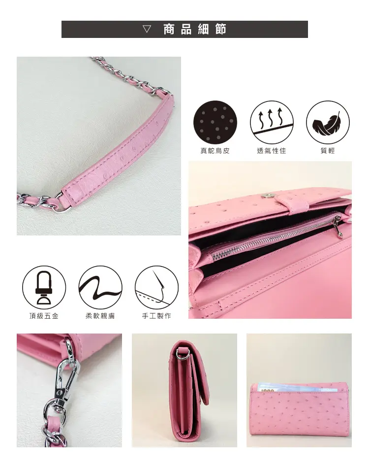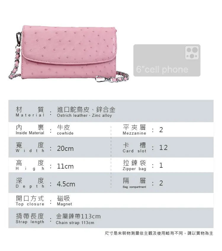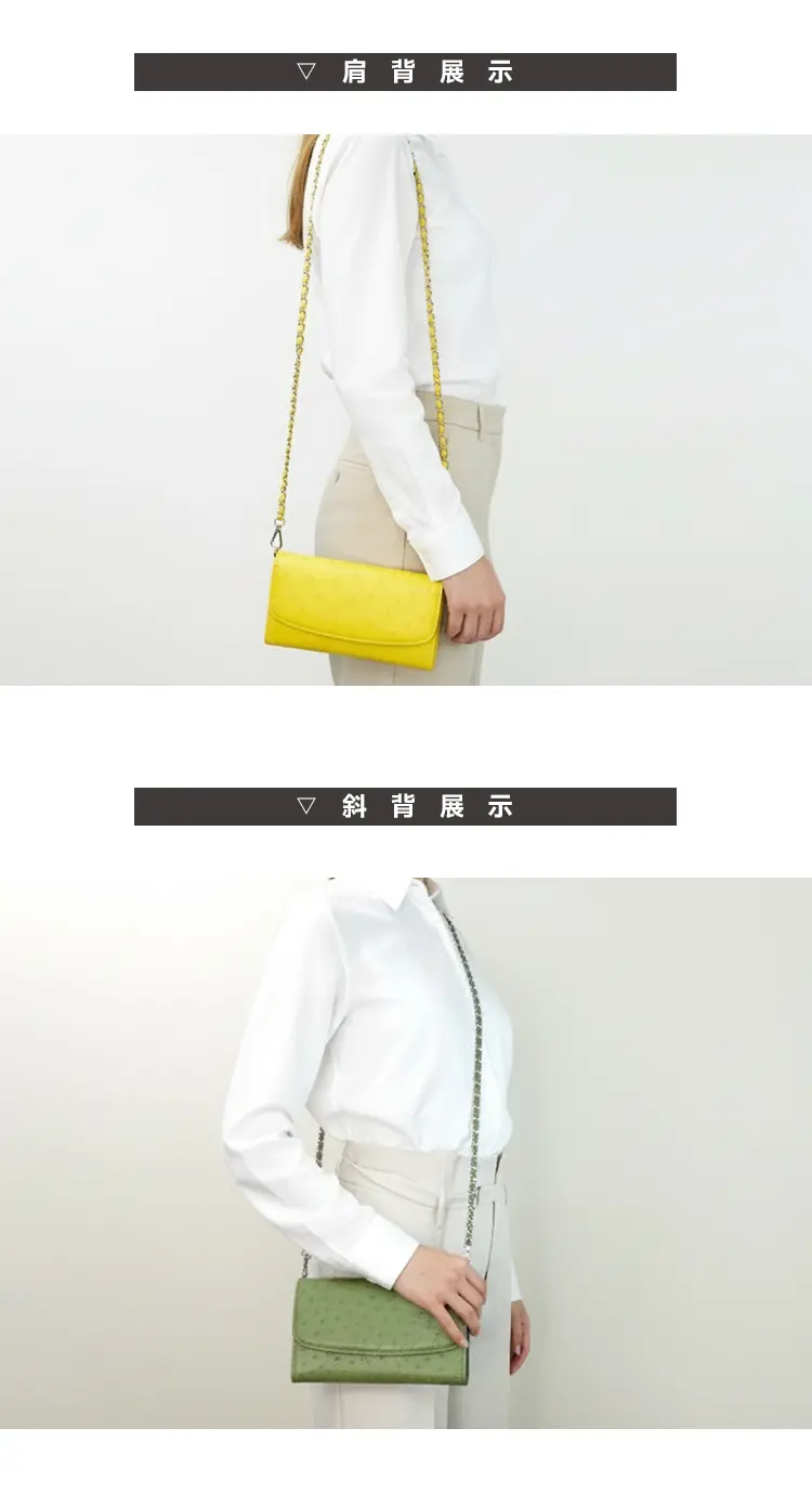 ※鴕鳥皮/鱷魚皮屬於天然珍稀皮革,每一只包都有獨特的天然動物紋路