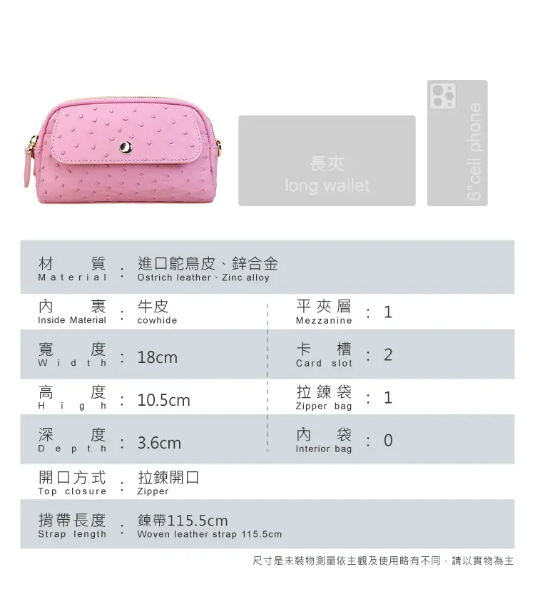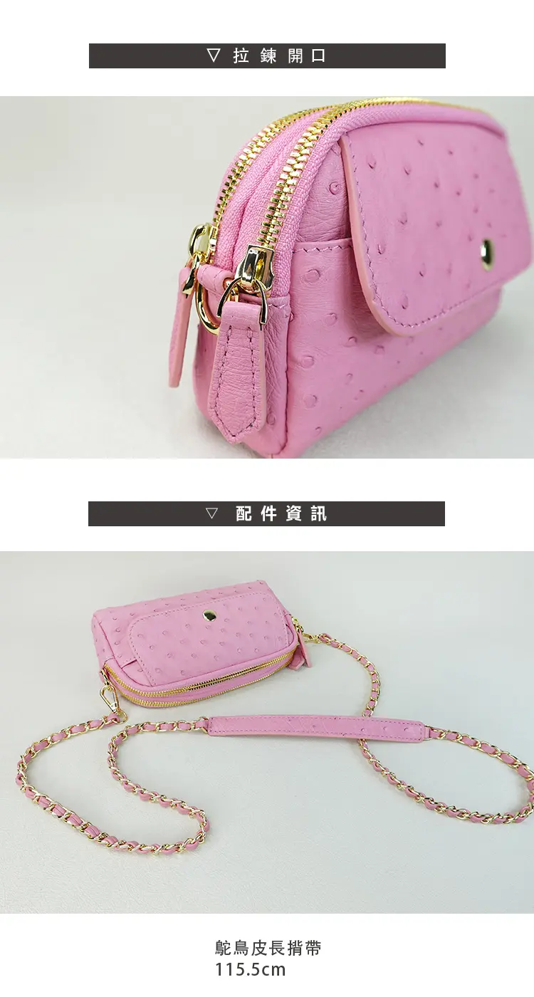 ※鴕鳥皮/鱷魚皮屬於天然珍稀皮革,每一只包都有獨特的天然動物紋路