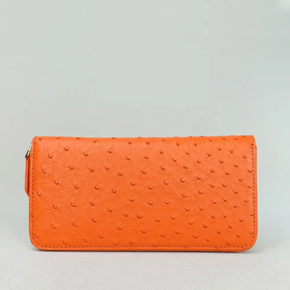 M2nd 輕奢OL珍稀鴕鳥皮長夾/精品橘色/一年保固