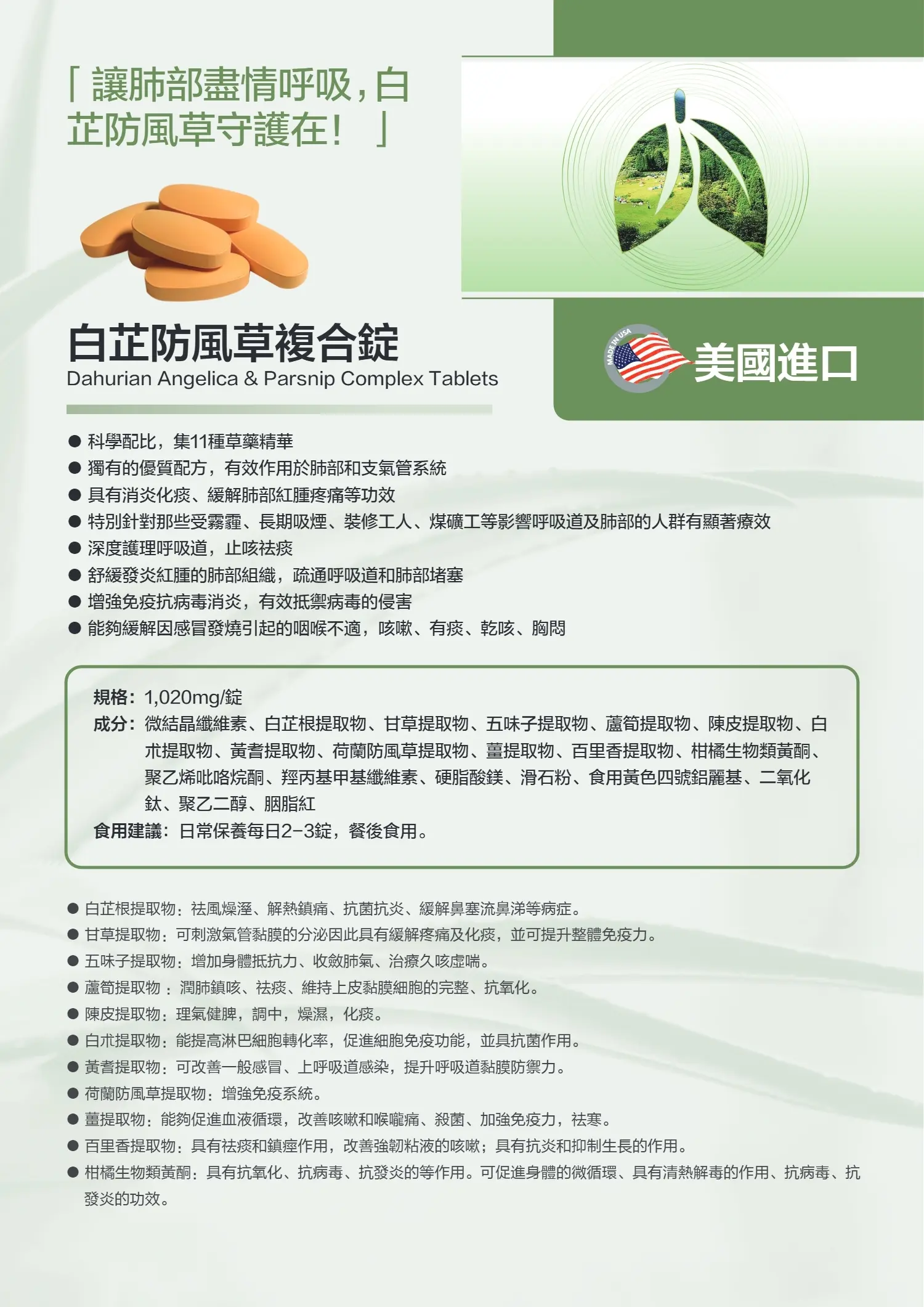 ◆品名:美國CaPower加柏爾 白芷防風草複合錠