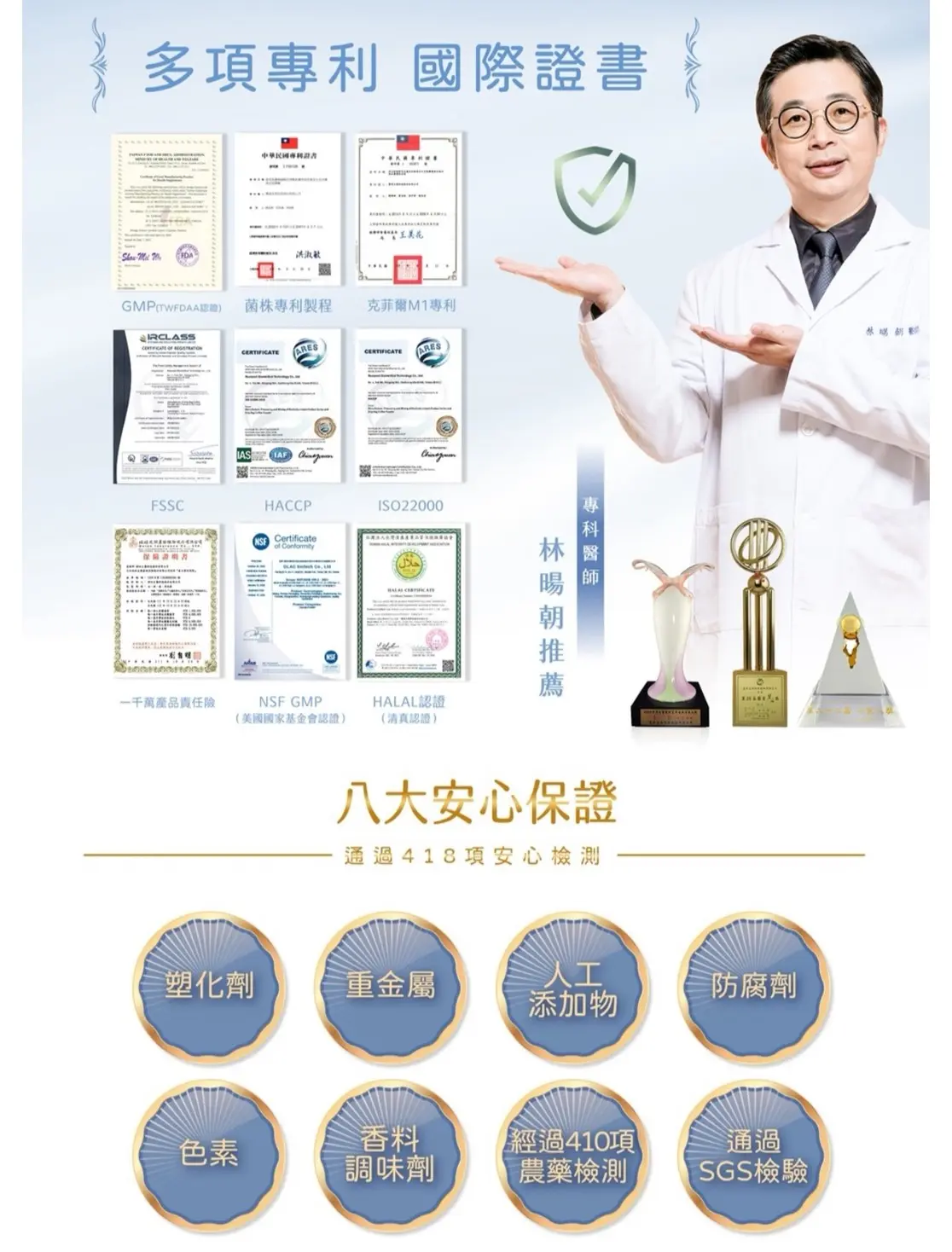 台灣知名大學技術授權,搭配8種活性乳酸菌