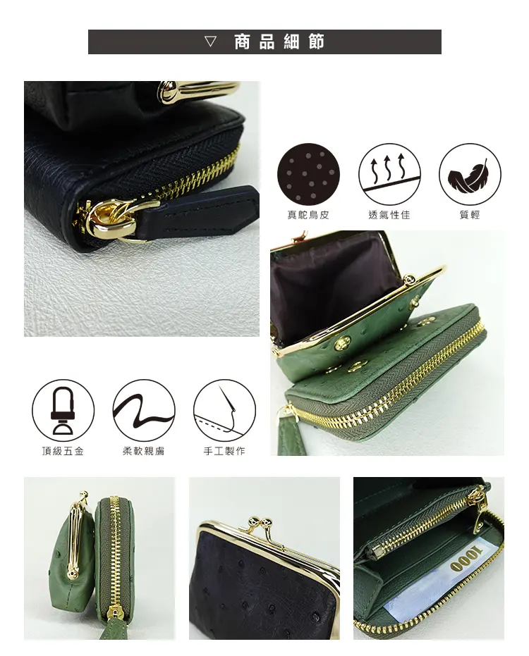 M2nd 珍稀鴕鳥皮便攜零錢包