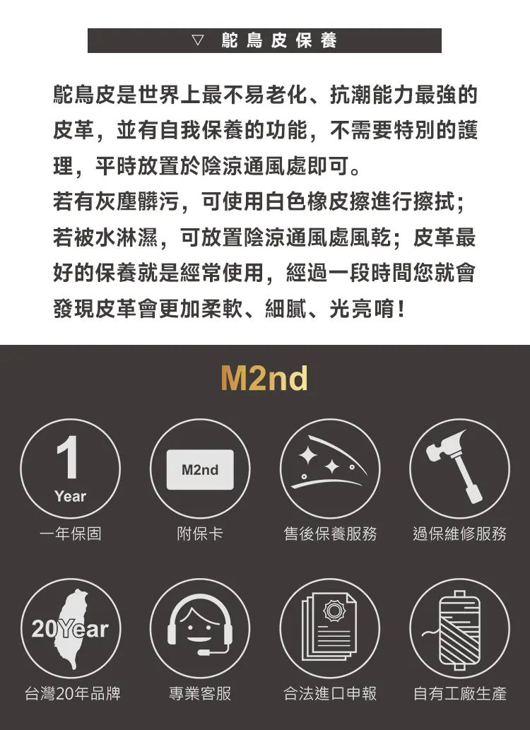 珍稀鴕鳥皮 M2nd義大利設計師品 3色選