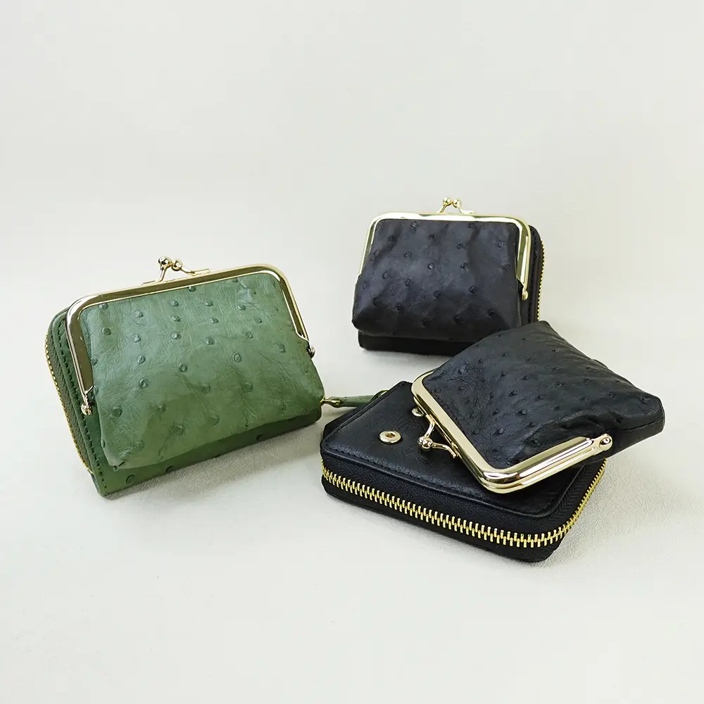 M2nd 珍稀鴕鳥皮萬用包兩件組/口金包/零錢包/老奶奶包/3色選